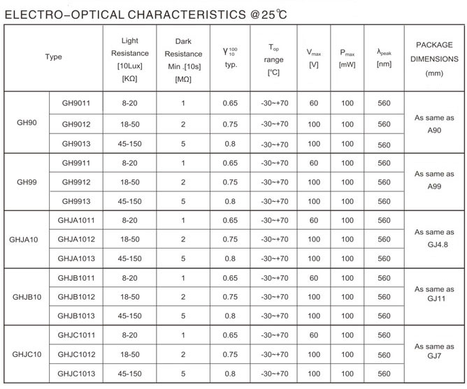 A90 series photoresistors